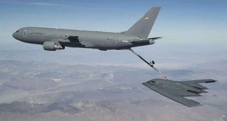 Máy bay tiếp nhiên liệu KC-46 tiếp nhiên liệu cho máy bay ném bom B-2. Ảnh: MW.