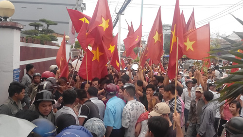 Tại Vũng Tàu, từ 7 giờ ngày 14.5, tại KCN Mỹ Xuân (H.Tân Thành, Bà Rịa-Vũng Tàu) có gần 1.000 công nhân tuần hành phản đối Trung Quốc… Đến 11 giờ 30, đoàn người kéo xuống KCN Đông Xuyên, TP.Vũng Tàu. Tuy nhiên khi đến cửa cổng KCN Đông Xuyên, gặp lực lượng công an TP.Vũng Tàu chốt ngoài cổng không cho vào nên đoàn người kéo xuống các tuyến đường ở trung tâm TP.Vũng Tàu tiếp tục tuần hành.