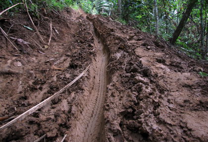 Cung đường đi tiếp của chúng tôi giống như cung đường sinh tử với độ dốc có thể lên đến 60 độ, liên tục vào cua. Cài số 1, lấy đà, lên “dây cót” tinh thần, vặn hết tay ga qua được mỗi đoạn dốc, trán ai cũng vã mồ hôi hột. Dốc cao không đáng sợ bằng thứ đất sét pha đất mối rừng trơn hơn đổ mỡ ở đây. Đường mòn chỉ nhỉnh hơn bánh xe chút ít, chỉ một đường cua lệch là xe sẽ nằm gọn dưới vực. Chỉ cần một trận mưa nhỏ thì ngay cả những con “ớt” chế hoàn hảo cũng bất lực hoàn toàn. “Nếu như biết có kiểm lâm đi kiểm tra mà lâm tặc đón đường đổ mấy xô nước xuống những đoạn dốc thì vô cùng nguy hiểm”, một cán bộ thuộc đội kiểm lâm cơ động Hạt kiểm lâm Thần Sa Phượng Hoàng chia sẻ.