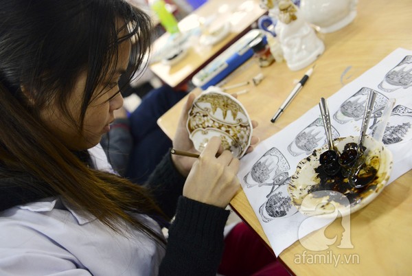Theo lời ông chủ xưởng chế tác này, các sản phẩm vẽ vàng này này của ông có độ bền vĩnh cửu chứ không giống như các loại gốm vẽ vàng thông thường trên thị trường.