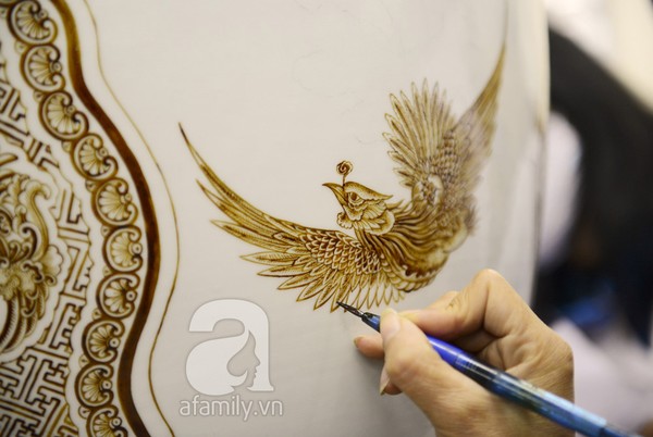 Vàng 24K được vẽ bằng tay một cách tỉ mỉ, cẩn thận, đòi hỏi sự kiên trì, nhẫn nại và sự tập trung cao độ.