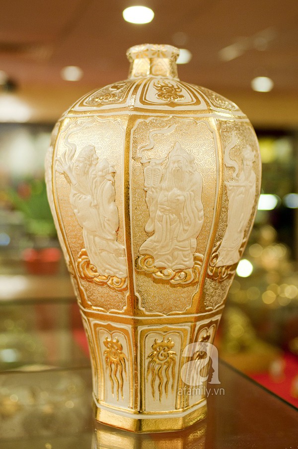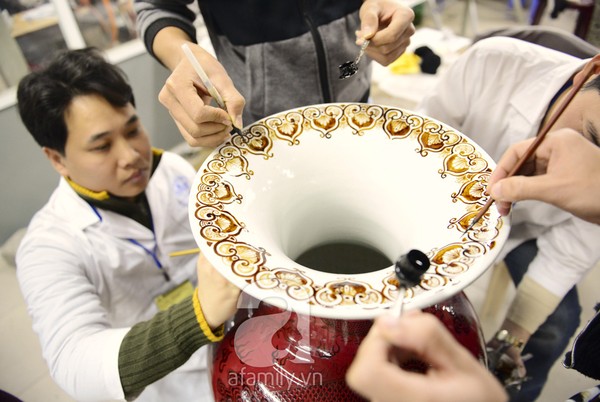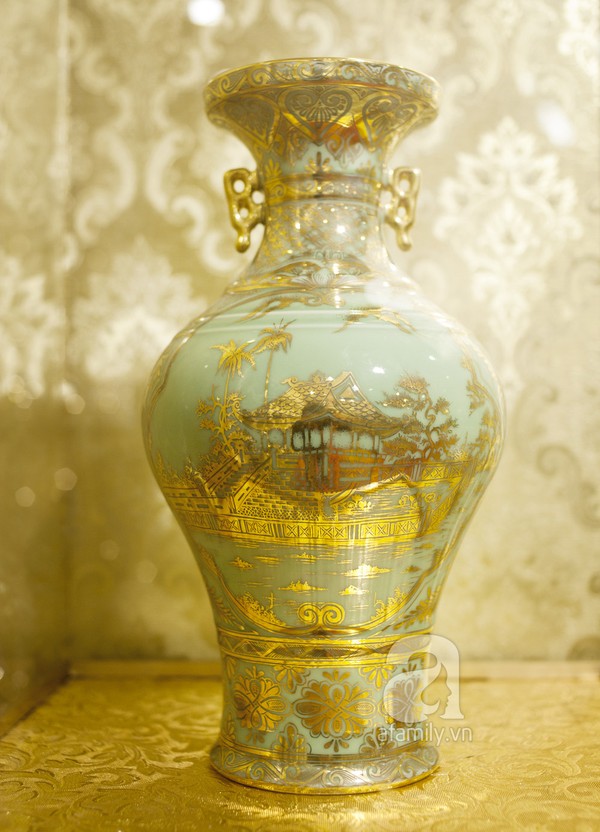 Để làm ra cặp lộc bình tiền tỉ với họa tiết vàng 24K thì những người thợ mất vài tháng trời, vẽ những né chỉ nhỏ bằng ¼ sợi tóc.