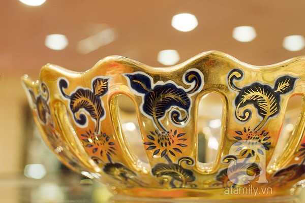 Sau khi vẽ vàng ròng lên, những sản phẩm này sẽ được nung lại lần cuối ở nhiệt độ 850 độ C để vàng bám chặt vào gốm.
