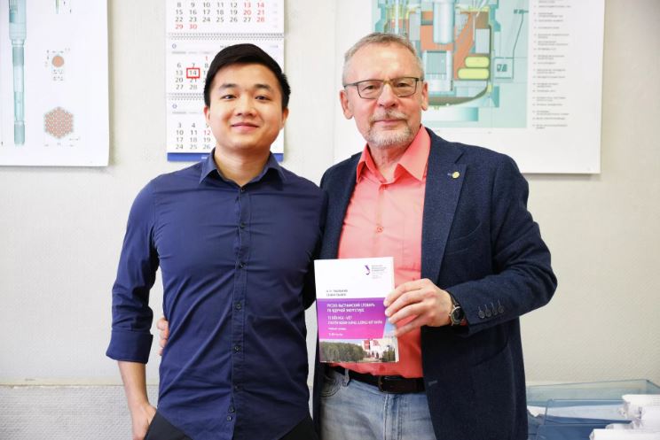 Từ điển Nga - Việt về năng lượng hạt nhân là kết quả hợp tác giữa TS. KH kỹ thuật Oleg Tashlykov (Đại học Liên bang Ural, Nga) và Kỹ sư nguyên tử Tạ Văn Thưởng (Viện Năng lượng, Bộ Công Thương Việt Nam). © Ảnh : Tạ Văn Thưởng