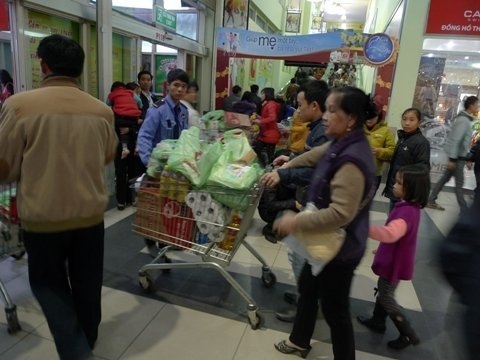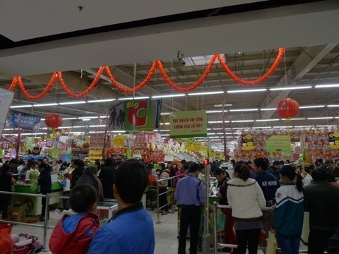 Khách đến mua hàng tại siêu thị Big C Thăng Long vô cùng đông vui nhộn nhịp, khiến không ít người liên tưởng đến cảnh những ngày giáp tết âm lịch người dân đổ xô đi mua đồ sắm tết. Mặc dù dân Việt không có thói quen mua tích trữ thực phẩm cho tết dương lịch, hiện tượng khách hàng tăng đột biến tại các siêu thị có lẽ là do đi siêu thị cũng là một cách chơi tết của người dân thủ đô.