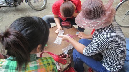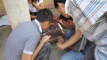 Dân mua đá chuyên nghiệp tường mang bên mình một chiếc đèn pin đến để soi, chọn hàng.