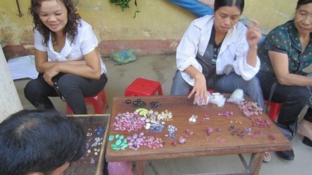 Tại đây, các loại đá quý được bày bán la liệt, từ đá ruby, thạch anh các loại, đá tôm….