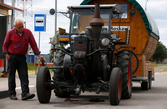 Ông Hubert Wirth, 70 tuổi, khởi hành cho chuyến hành trình tới Nga từ thành phố Pforzheim của Đức. Ông dự kiến sẽ đến Moscow trong 10 ngày. Người bạn đồng hành của ông là một chú chó cưng.