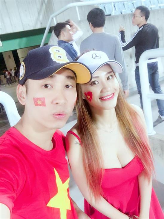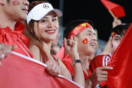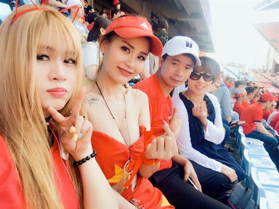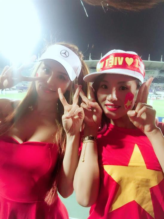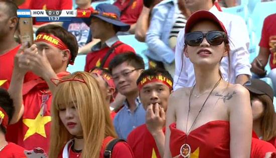 Nữ CĐV mặc chiếc áo đỏ gợi cảm hòa lẫn vào khu vực các CĐV Việt Nam. Tuy nhiên, cô được các máy quay chú ý đến và liên tục cho xuất hiện trên truyền hình.
