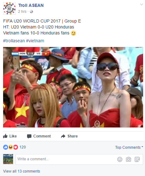 Trang fanpage nước ngoài thậm chí còn bông đùa rằng sau hiệp 1, tỷ số CĐV giữa Việt Nam và Honduras là 10-0.