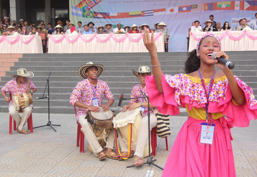 Nghệ sĩ đoàn Rio en Caribe - Colombia biểu diễn múa hát truyền thống phục vụ quần chúng và các đại sứ của nhiều nước trong buổi khai mạc