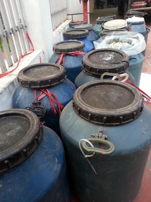 Một số thùng còn ghi cả tiếng Trung ở bên ngoài. Ảnh: Thái Thịnh.