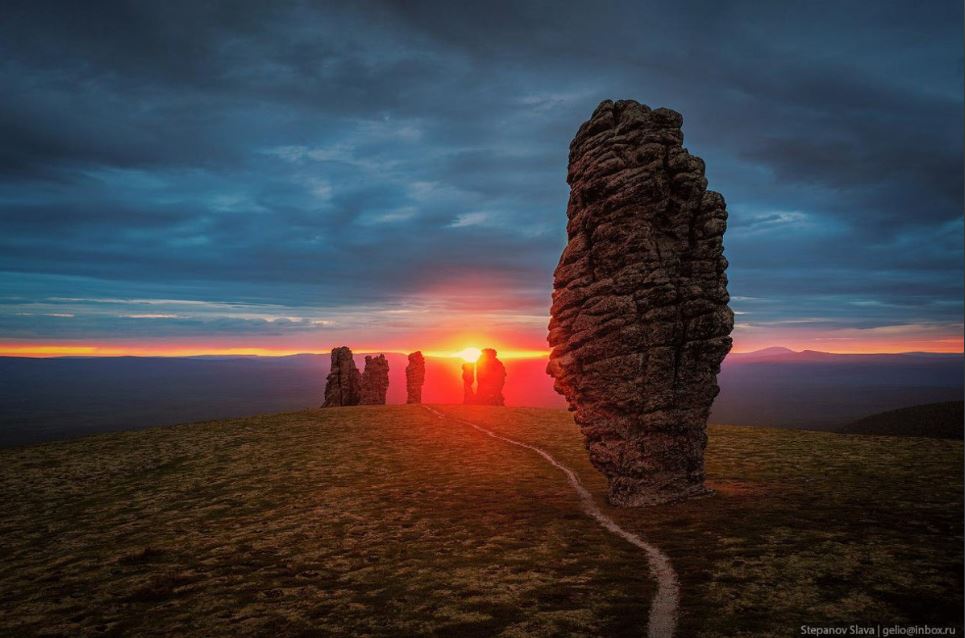 Manpupuner gồm 7 cột đá khổng lồ nằm ở phía tây dãy núi Ural, thuộc Cộng hòa Komi, Nga. Ảnh: Slava Stepanov.