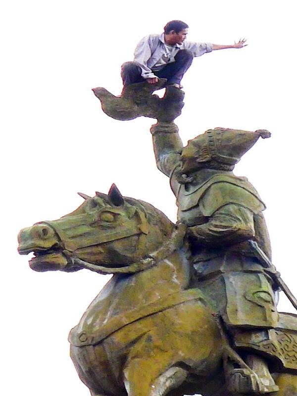 Chùm ảnh người say xỉn leo lên tượng Trần Nguyên Hãn, Quận 1, TP.HCM để quậy phá - Ảnh: Lê Quang Nhật