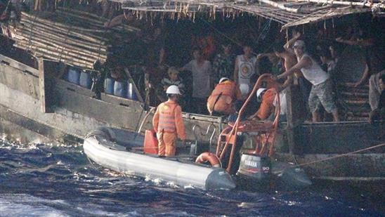 Cùng tàu hải cảnh Trung Quốc ngăn cản SAR 412 cứu ngư dân tàu BĐ 95569 - Ảnh: Xuân Sơn