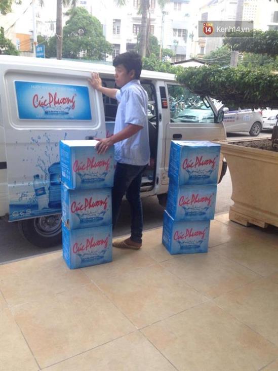 Nước đóng chai được điều động đến cho người dân sử dụng.