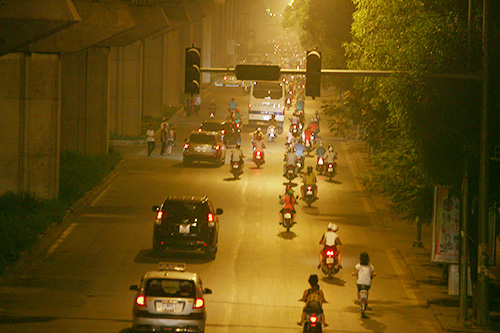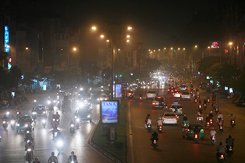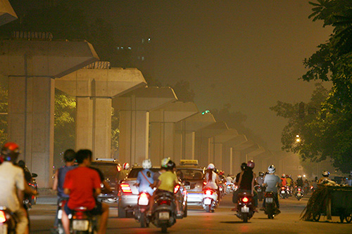 Tối 15/6, nhiều tuyến đường của Thủ đô lại bị một làn khói trắng bủa vây. Người đi đường có thể cảm thấy đau mắt và tầm nhìn hạn chế.
