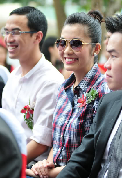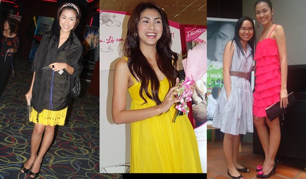 Tới cuối năm 2009, người đẹp bất ngờ thay đổi phong cách. So với hình ảnh cũ (bên trái), thì bộ váy đỏ FCUK nổi bật mà đơn giản cùng kiểu tóc búi trẻ trung, sang trọng đã mang tới đẳng cấp mới cho vẻ ngoài của Tăng Thanh Hà.