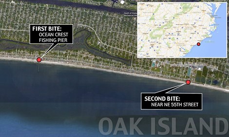 Một phát ngôn viên thuộc sở cảnh sát địa phương cho biết vào thứ Năm tuần trước (11-06) cũng cho biết đã xảy ra một vụ tấn công do cá mập, nạn nhân là bé gái 13 tuổi tại bãi biển Ocean Isle cách bãi biển Oak Island khoảng 30 dặm, khiến chân cô bé bị trầy xướt nhẹ.
