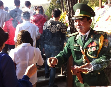 Đại diện Đội bảo vệ mộ Đại tướng giúp người dân dâng hương