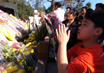 Cháu bé thành kính trước mộ Đại tướng