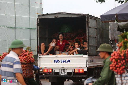 Một chủ vườn vải cho biết, vài tuần nay sáng nào anh cũng lên Lục Ngạn đổ vải. "Ngày nào tôi cũng bị kẹt xe nhưng quen rồi, đợi một lúc là hết", anh cười nói.