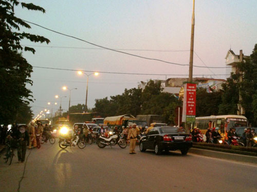 Hàng trăm người dân dừng xe bên đường chứng kiến vụ việc