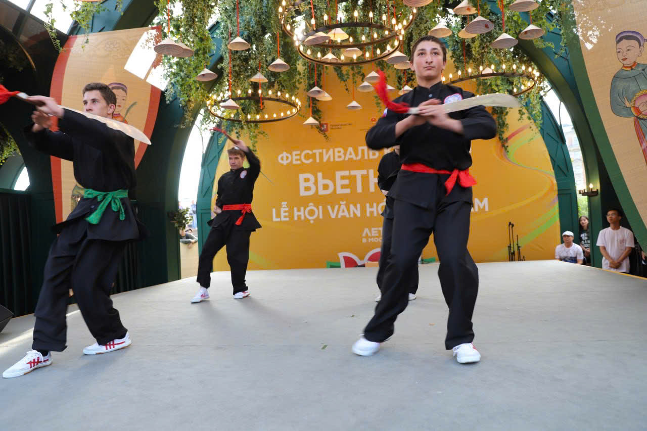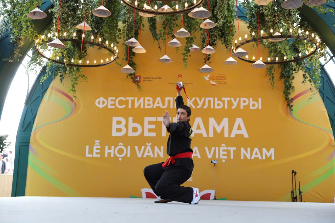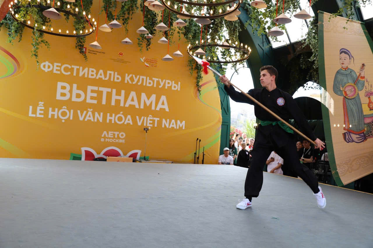 Giữa không gian lịch sử thiêng liêng, tiếng trống trận Tây Sơn vang lên hào hùng, nền nhạc “Hào Khí Việt Nam” dồn dập khơi dậy tinh thần bất khuất của dân tộc. Những bài quyền và kỹ thuật binh khí cổ truyền như thương, kiếm, côn nhị khúc, rìu chiến, phiến… được thể hiện uyển chuyển mà mạnh mẽ, giàu tính nghệ thuật và khí phách anh hùng. Hàng trăm khán giả Nga vây quanh sân khấu đã không ngớt vỗ tay tán thưởng, thể hiện sự ngưỡng mộ và tôn trọng đối với nền võ học Việt Nam.