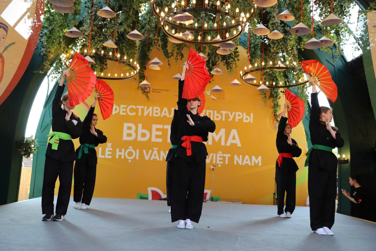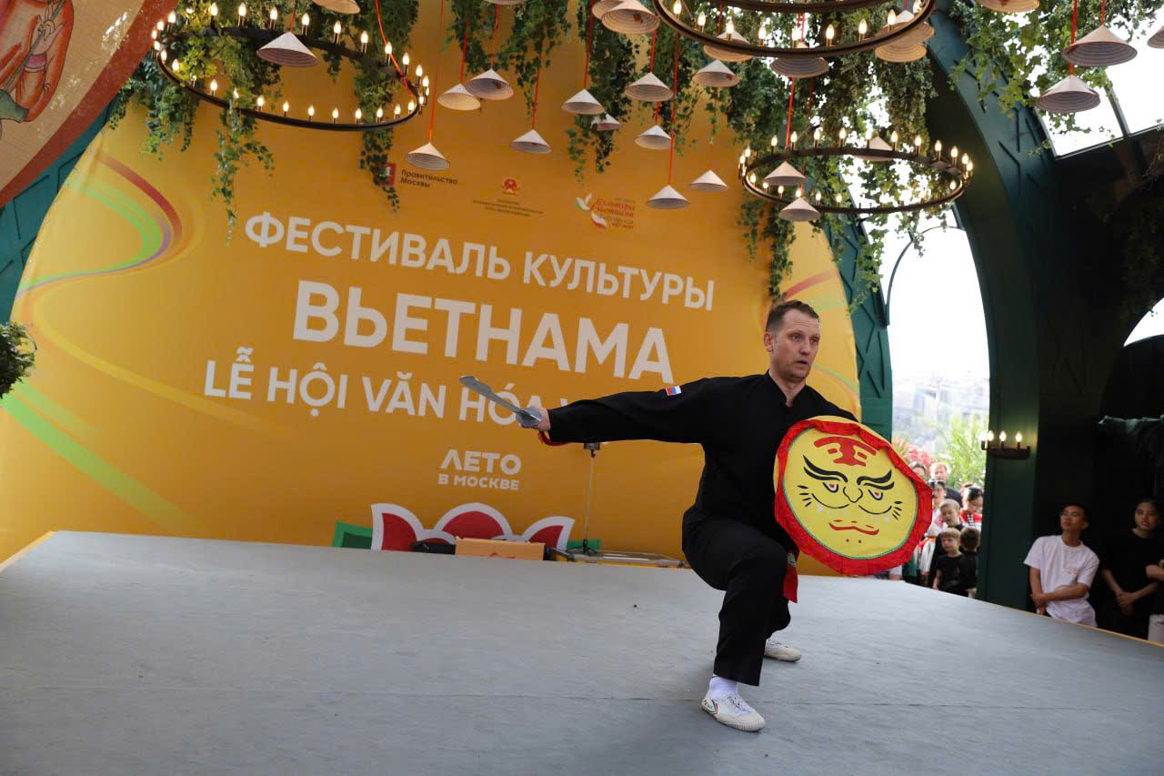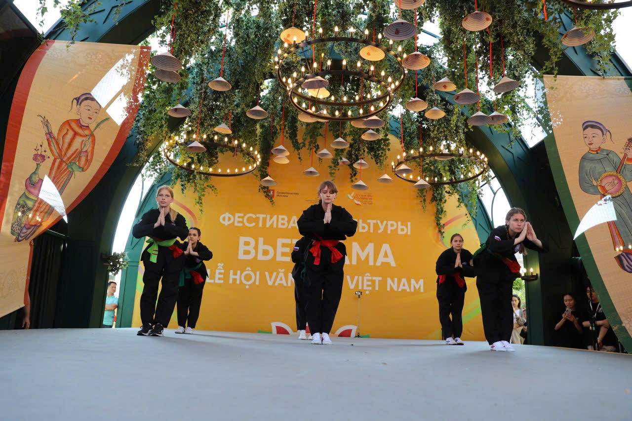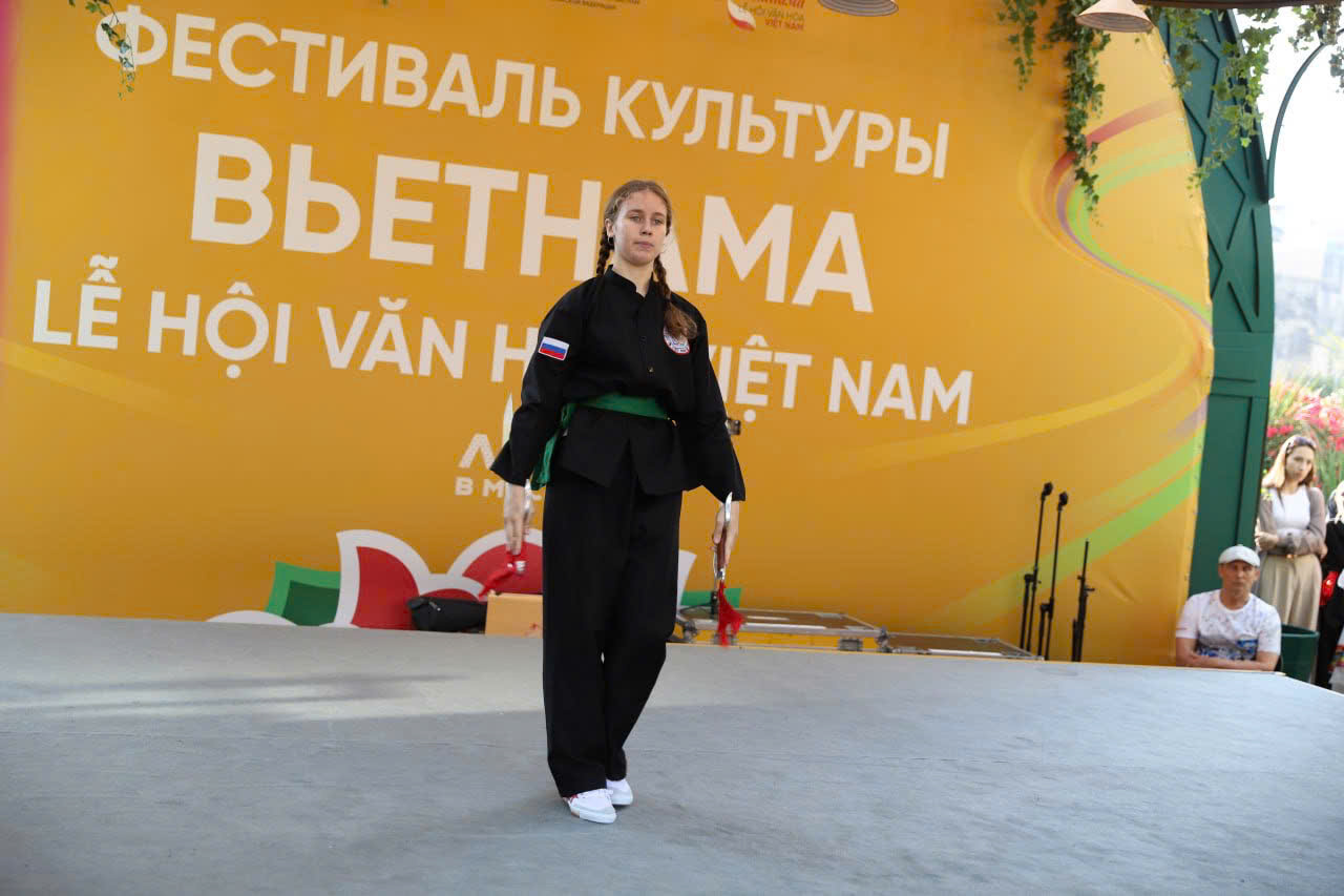 Giữa không gian lịch sử thiêng liêng, tiếng trống trận Tây Sơn vang lên hào hùng, nền nhạc “Hào Khí Việt Nam” dồn dập khơi dậy tinh thần bất khuất của dân tộc. Những bài quyền và kỹ thuật binh khí cổ truyền như thương, kiếm, côn nhị khúc, rìu chiến, phiến… được thể hiện uyển chuyển mà mạnh mẽ, giàu tính nghệ thuật và khí phách anh hùng. Hàng trăm khán giả Nga vây quanh sân khấu đã không ngớt vỗ tay tán thưởng, thể hiện sự ngưỡng mộ và tôn trọng đối với nền võ học Việt Nam.