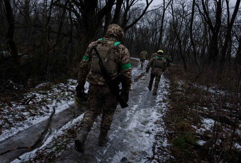 Binh sĩ Ukraine di chuyển gần Lyman, vùng Donetsk. Ảnh: New York Times.