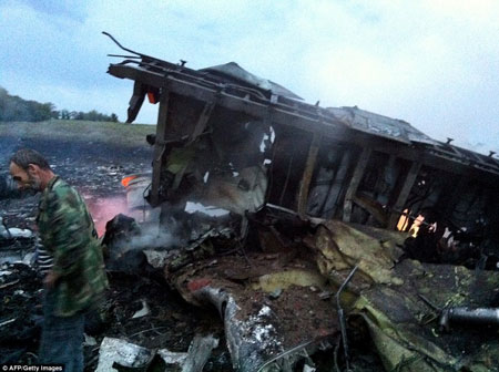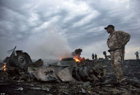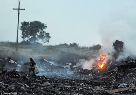 Hiện trường máy bay Malaysia rơi, tại khu vực do quân nổi dậy nắm giữ ở miền đông Ukraine, khu vực đang có nhiều cuộc giao tranh giữa quân chính phủ Ukraine và phe nổi dậy.