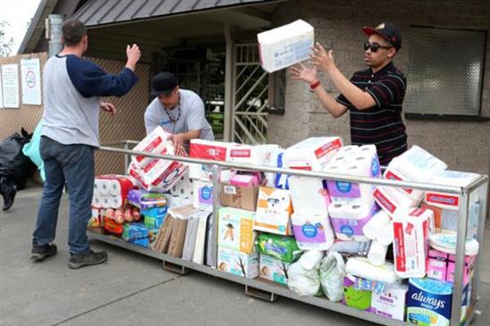 Hàng hoá cứu trợ được gửi đến người dân đang tập trung sơ tán ở thành phố Chico, bang California. Ảnh: Reuters