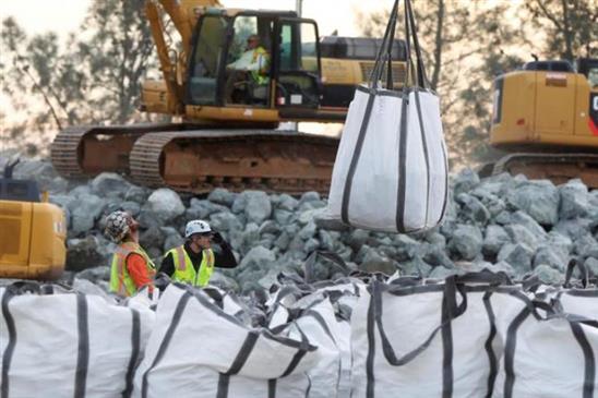 Các túi đá lớn dùng để vá đập Oroville. Ảnh: Reuters