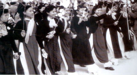 Đoàn thể phụ nữ Hà Nội diễu hành trong ngày 10/10/1954