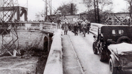 Quân Pháp đi ra, quân ta tiến vào tiếp quản Thủ đô, hình ảnh chụp trên cầu Long Biên 58 năm trước