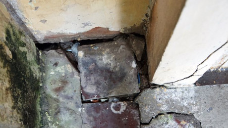 Ở khu vực tầng 1, khối đế của tòa nhà nghiêng lún mất liên kết với mặt bằng nền nhà.