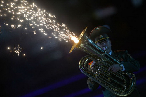 Buổi lễ khai mạc Liên hoan Quân nhạc quốc tế “Tháp Spasskaya” lần thứ 8 diễn ra hoành tráng. Các đội quân nhạc đến từ 14 quốc gia trên thế giới, trong đó có Trung Quốc, Hy Lạp, Nhật Bản, Tây Ban Nha và Anh tham dự sự kiện.