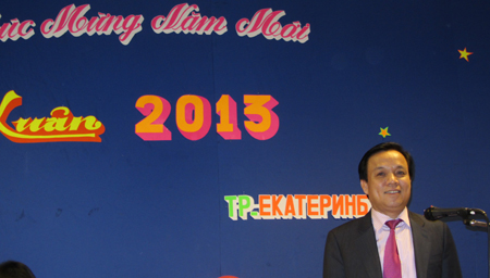 Ông Hoàng Văn Vinh, Chủ tịch Hội Người Việt Nam tỉnh Xverdlov, thay mặt Ban Chấp hành Hội đã đọc lời chúc mừng năm mới 2013.