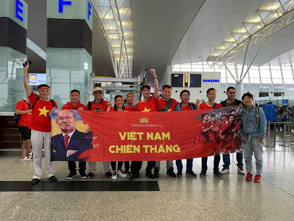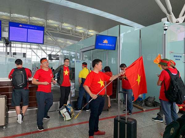 Đã có hơn 300 CĐV đi trên các chuyến bay thẳng đặc biệt của Vietnam Airlines. Ảnh: KH