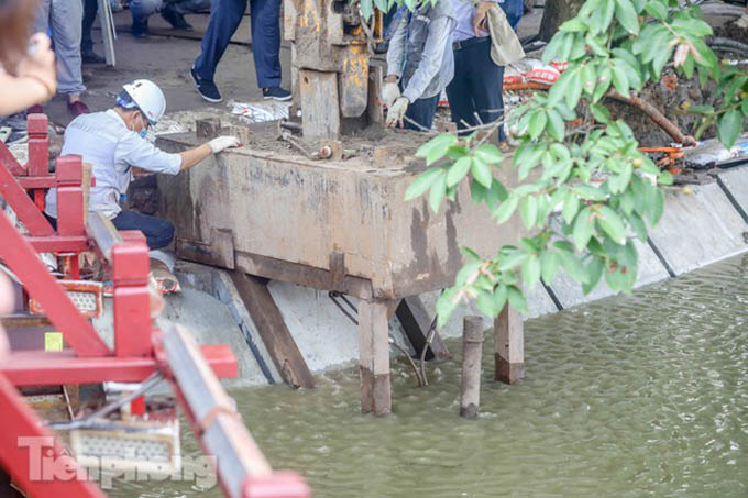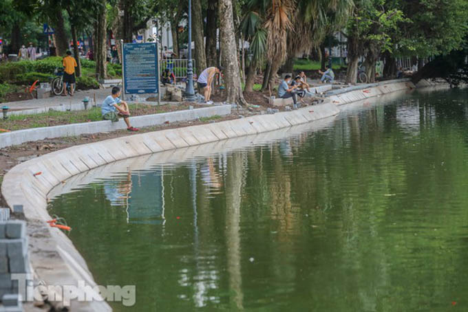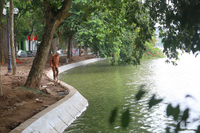 Trước đó, đơn vị thi công thực hiện 3 mũi thi công chia thành 6 ca được đưa vào hoạt động đồng thời suốt ngày đêm chỉnh trang kè hồ Hoàn Kiếm.