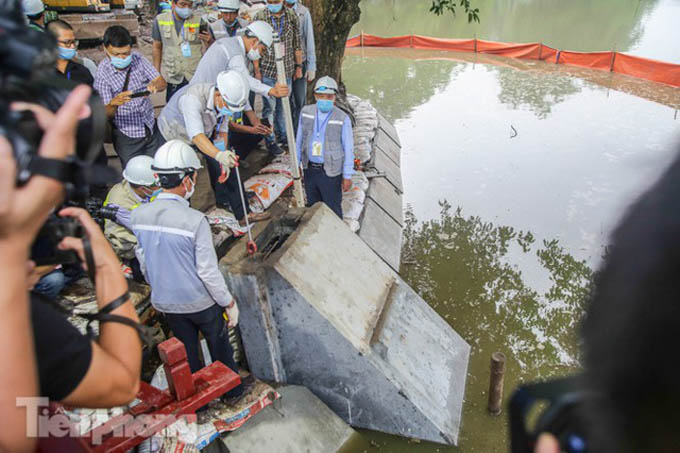 Hợp long công trình kè hồ Hoàn Kiếm bằng 1.500 khối bê tông cốt sợi