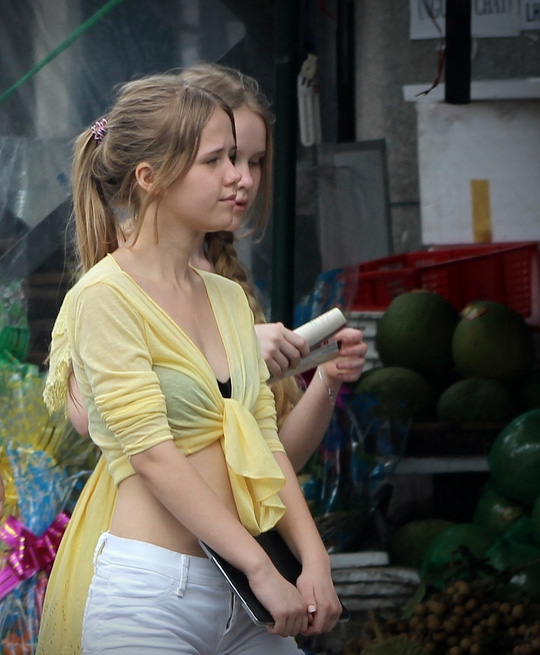 Hai cô gái Nga dạo chợ Xóm Mới (Nha Trang).