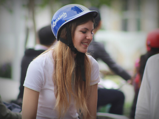 Một cô gái Nga ghi lại khoảnh khắc đáng nhớ của mình ở đường phố Nha Trang.
