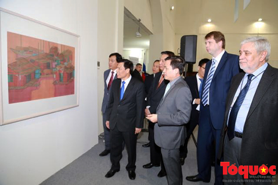 Các quan khách Nga và Việt Nam tham quan Triển lãm tranh lụa
