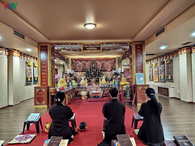 Không chỉ tuần rằm, mùng Một, hàng ngày, bà con người Việt sống ở Tổ hợp đa chức năng Hà Nội - Moscow vẫn lên đây thắp hương, tụng kinh niệm Phật cầu bình an, hạnh phúc cho gia đình, người thân.