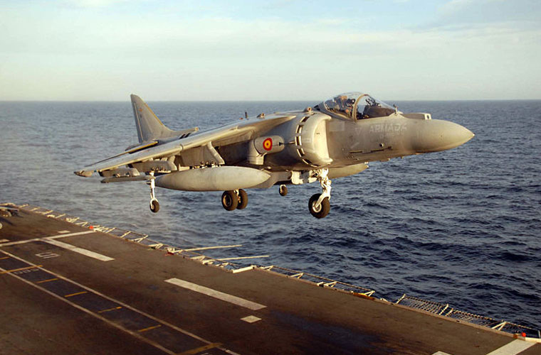 Tiêm kích phản lực AV-8S Matadors cất cánh trên boong tàu sân bay (ảnh minh họa nước ngoài).