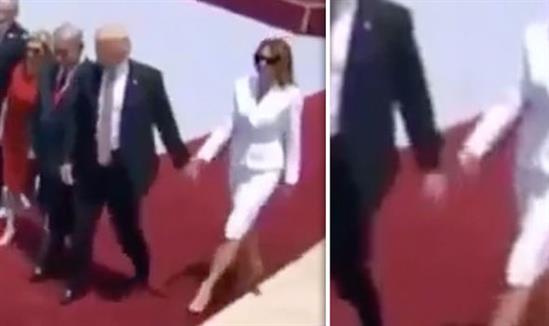 Đệ nhất Phu nhân Melania thằng thừng gạt tay Tổng thống Trump khi ông có ý định cầm tay bà. Hành động này được ghi lại trong video của hãng tin Israel Haaretz.