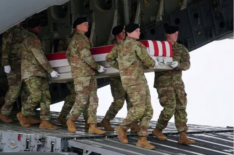 Quân đội Mỹ khiêng quan tài chứa hài cốt của một binh sĩ thiệt mạng trong chiến dịch
