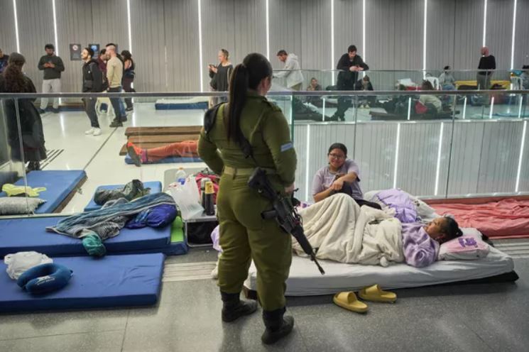 Người dân trú ẩn trong một ga tàu điện ngầm ở Ramat Gan, Israel.