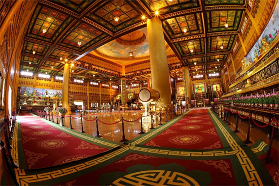 Nổi bật nhất trong quần thể kiến trúc Đại Nam Văn Hiến là khu đền thờ Đại Nam với nhiều chi tiết tinh xảo trên vách, cửa, trần... được làm bằng vàng 24K. Diện tích của khu đền thờ lên tới 9ha, là một quần thể gồm khu Kim điện, dãy Ngũ Hành, Bảo Tháp...